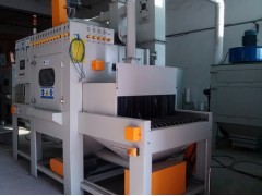 采用三角皮帶輸送工件,不會積砂,皮帶速度配合噴砂工藝要求可實現變頻調速;每支噴槍角度可自由調節槍架實現自動變頻搖擺,并可定點噴砂,靈活性強、適用性廣;采用先進的旋風分離系統配置,粉塵他離效果好,噴 砂效率高;采用PLC電氣先進控制系統,自動化程度高,穩定性好,故障率低;噴嘴采用特制高耐磨陶瓷材料,使用壽命長;獨立的布袋式除塵系統,抽塵通風效果良好;(也可選用;脈沖濾芯式除塵);磨料回收采用螺旋輸送及氣力回收相結合,回收穩定性好。