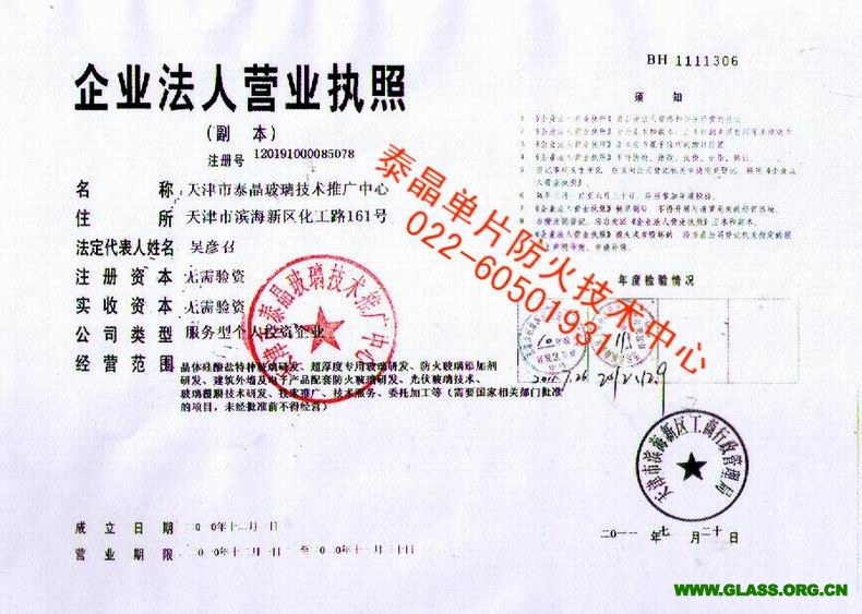 證書介紹 天津市泰晶玻璃技術推廣中心以天津大學化工學院為技術依托,與泰國吳氏硅酸鹽研究室緊密合作專門從事特種玻璃技術產業化為主的高科技實體,中心成立于2010年12月,擁有多項自主知識產權專利技術,有著國際領先的消防界面材料技術。目前,中心多項技術已成功地應用于建筑防火建筑玻璃、太陽能光伏玻璃、汽車輪船用玻璃等領域,并已成功研發出多項專利產品推向市場,產生了極好的經濟效益和社會效益。中心擁有一支在硅酸鹽玻璃領域有著極高造詣的國內外知名專家和學者的科學家團隊和多處實驗基地。研發出多項填補國內玻璃技術市場空白的特種玻璃加工技術和產品,與國內外多家玻璃企業緊密合作,為企業的發展帶來新的活力和非常可觀的經濟效益。聲明:我中心所提供的技術知識產權均為中心所有,所研發的產品未經授權,任何單位和個人不得出售,違者必究。 證書圖片 |
