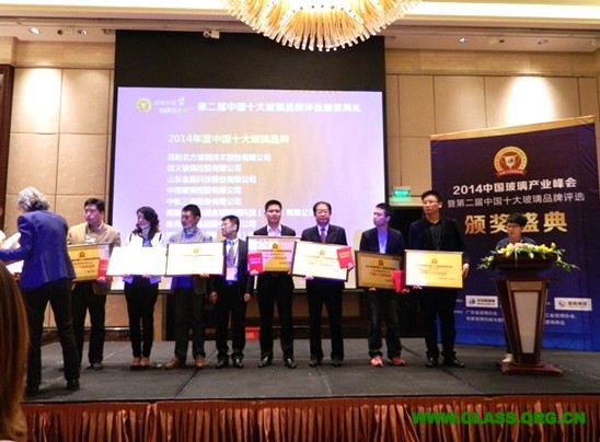 2014年4月15日,“2014中國玻璃產業峰會暨第二屆中國十大玻璃品牌評選頒獎盛典”在上海浦東嘉里大酒店隆重舉行。此次活動由中國玻璃網、中國建材網聯合主辦,200多家知名玻璃企業參與,經過三個月的網絡投票、專家評審、公眾評選等程序最終產生獲選名單。