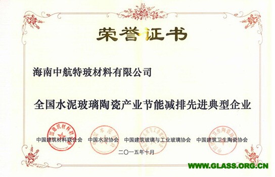 2015年10月15日,由中國(guó)建筑材料聯(lián)合會(huì)、中國(guó)水泥協(xié)會(huì)、中國(guó)建筑玻璃與工業(yè)玻璃協(xié)會(huì)、中國(guó)建筑衛(wèi)生陶瓷協(xié)會(huì)聯(lián)合舉辦的全國(guó)水泥玻璃陶瓷產(chǎn)業(yè)全面推進(jìn)節(jié)能減排達(dá)標(biāo)工作大會(huì)在廣東佛山召開(kāi)。會(huì)上,26家全國(guó)水泥玻璃陶瓷產(chǎn)業(yè)節(jié)能減排先進(jìn)典型企業(yè)受到了表彰,海南中航特玻材料有限公司倡導(dǎo)技術(shù)創(chuàng)新和節(jié)能環(huán)保,堅(jiān)持環(huán)保路線,在本次大會(huì)上作為“全國(guó)水泥玻璃陶瓷產(chǎn)業(yè)節(jié)能減排先進(jìn)典型企業(yè)”受到表彰。