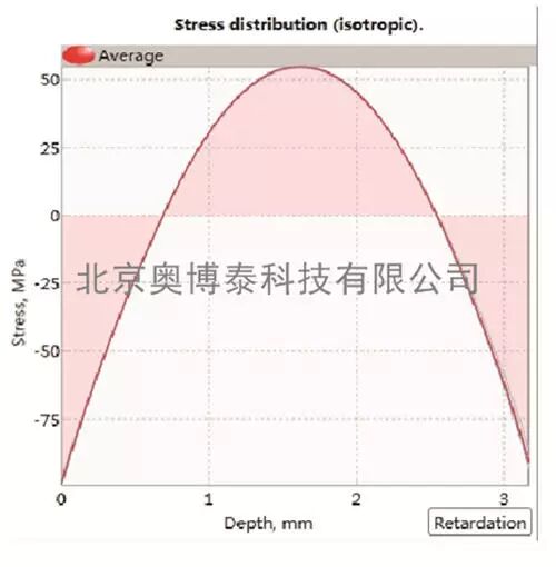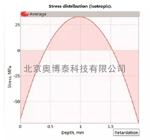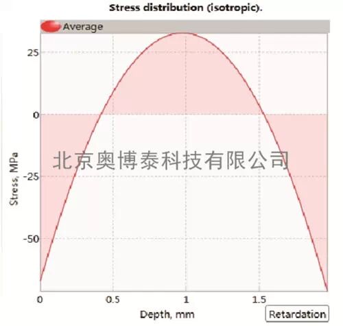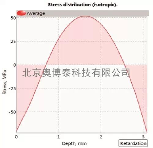 玻璃中的應力使玻璃產生雙折射性質,產生光彈性效應,這時通過玻璃的偏振激光束的雙折射程度,與應力的分布和材料的光折射率有關。GlasStress 便攜式智能應力分析儀采用一束5mW的偏振態(tài)激光,傾斜穿過被測玻璃材料,在垂直于光束傳播方向的平面內,光束在每一點都被分解為沿應力狀態(tài)的兩個主應力方向的偏振光分量。這兩個分量之間存在著與光彈材料主應力差成正比的位相差,其值沿光路變化。沿光束傳播方向上的光強度變化被記錄下來,并由此計算出該方向上各像素點處的兩個偏振光分量的位相差,由位相差的變化可計算得到各點的應力數值,并通過擬合得到樣品內部的應力分布。