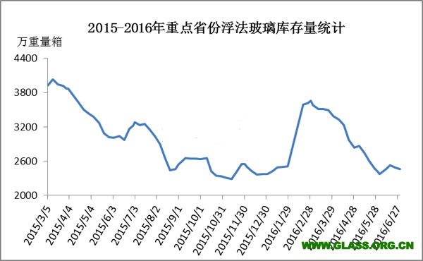 2016年6月份全國玻璃生產企業庫存情況分析