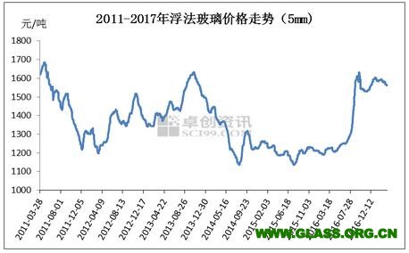 據卓創資訊統計,2017年有點火及復產計劃的生產線共計28條,產能合計1.7萬噸/日。在2017年即將進入正常冷修期的生產線約17條,日熔量合計1.1萬噸。從現有數據看,預計2017年增加產能將超過減少產能,將又是一個產能投放高點,并將制約2017年浮法玻璃市場價格發展。