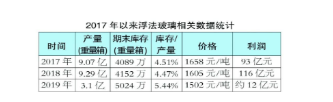中國建筑玻璃與工業玻璃協會常務副會長張佰恒在日前舉行的2019年平板玻璃大企業領導人圓桌會議(GT12峰會)上表示,如果到7月份新點火產能全部釋放,7月底可能會發生非常大的變化,到8月份庫存可能進一步增加,由此帶來生產的壓力、經營的壓力、資金的壓力等,這是非常危險的。