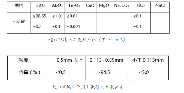 在眾多原料中,SiO2是形成玻璃骨架的主體,引入的SiO2硅質原料是玻璃生產中最主要和用量最大的原料,也是超白玻璃生產中首先要解決和控制的。