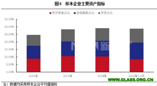 樣本企業(yè)應收賬款規(guī)模持續(xù)增長且有進一步擴大趨勢。鑒于玻璃生產(chǎn)企業(yè)行業(yè)競爭激烈且與下游議價能力有限,同時疊加業(yè)務擴張以及近期房地產(chǎn)企業(yè)融資政策趨緊等多重因素影響,應收賬款占資產(chǎn)總額的比重持續(xù)增長,2017年、2018年及2019年9月末占資產(chǎn)總額的比重分別為9.64%、10.28%和10.93%,應收款項對企業(yè)資金占用加大。此外,鑒于2019年行業(yè)整體庫存偏高,樣本企業(yè)存貨占資產(chǎn)總額的比重均值由2018年末的8.26%提升至2019年9月末的9.09%。中證鵬元預計2020年玻璃制造企業(yè)出于擴大業(yè)務的目的,仍將采用賒銷模式,鑒于疫情對房地產(chǎn)銷售造成的沖擊,中小房企的資金緊張程度進一步加重,玻璃制造企業(yè)為配合下游企業(yè)資金情況,賒銷程度或?qū)⑦M一步擴大。同時下游企業(yè)經(jīng)營壓力加大將一定程度增加玻璃制造企業(yè)壞賬風險。