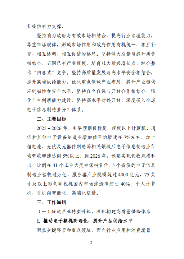 工業(yè)和信息化部 市場(chǎng)監(jiān)督管理總局關(guān)于印發(fā)《電子信息制造業(yè)2025-2026年穩(wěn)增長(zhǎng)行動(dòng)方案》的通知