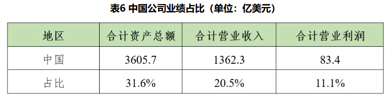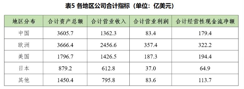 除中國以外,其他地區(qū)公司合計(jì)資產(chǎn)總額均有不同程度的增長。在整體營業(yè)利潤下滑的情況下,歐洲公司合計(jì)營業(yè)利潤增長8.7%,體現(xiàn)了較強(qiáng)的盈利能力。