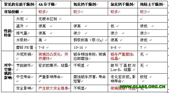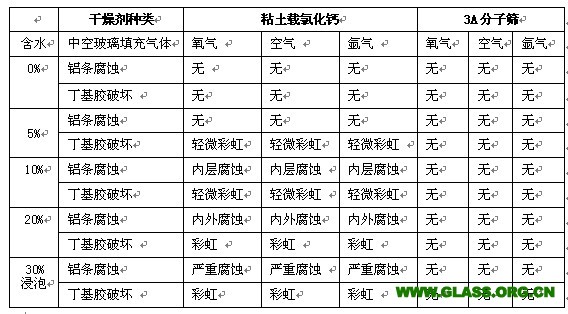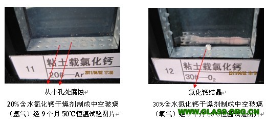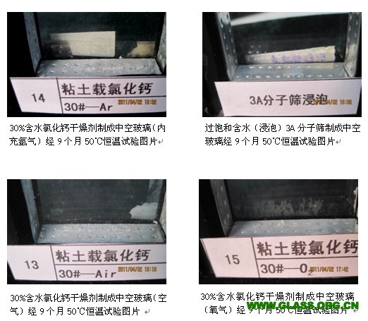 粘土載氯化鈣類干燥劑對中空玻璃的影響試驗結果