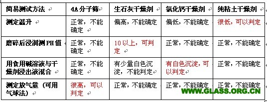 中空玻璃四類干燥劑的簡易鑒別方法