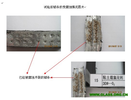 4. 氯化鈣干燥劑可以腐蝕鋁條;讓鋁條內外銹跡斑斑,腐蝕速度很快,試驗一個星期后就出現銹跡,幾個月便可使鋁條銹透,并且伴隨大量鹽類結晶。