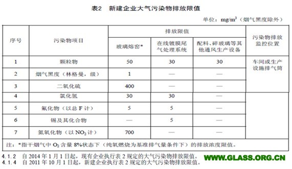 表2《平板玻璃工業大氣污染物排放標準》GB26453-2011