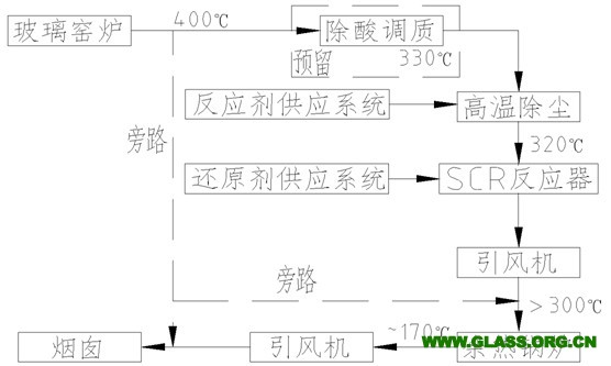 關鍵詞:玻璃窯、SCR工藝、玻璃窯灰分、工藝布置