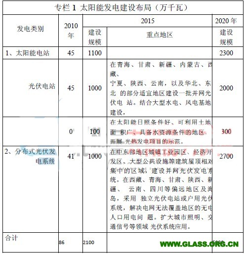 1、實現較大規模發展。到2015 年底,太陽能發電裝機容量達到2100 萬千瓦以上,年發電量達到250 億千瓦時。重點在中東部地區建設與建筑結合的分布式光伏發電系統,建成分布式光伏發電總裝機容量1000 萬千瓦。在青海、新疆、甘肅、內蒙古等太陽能資源和未利用土地資源豐富地區,以增加當地電力供應為目的,建成并網光伏電站總裝機容量1000 萬千瓦。以經濟性與光伏發電基本相當為前提,建成光熱發電總裝機容量100 萬千瓦。
